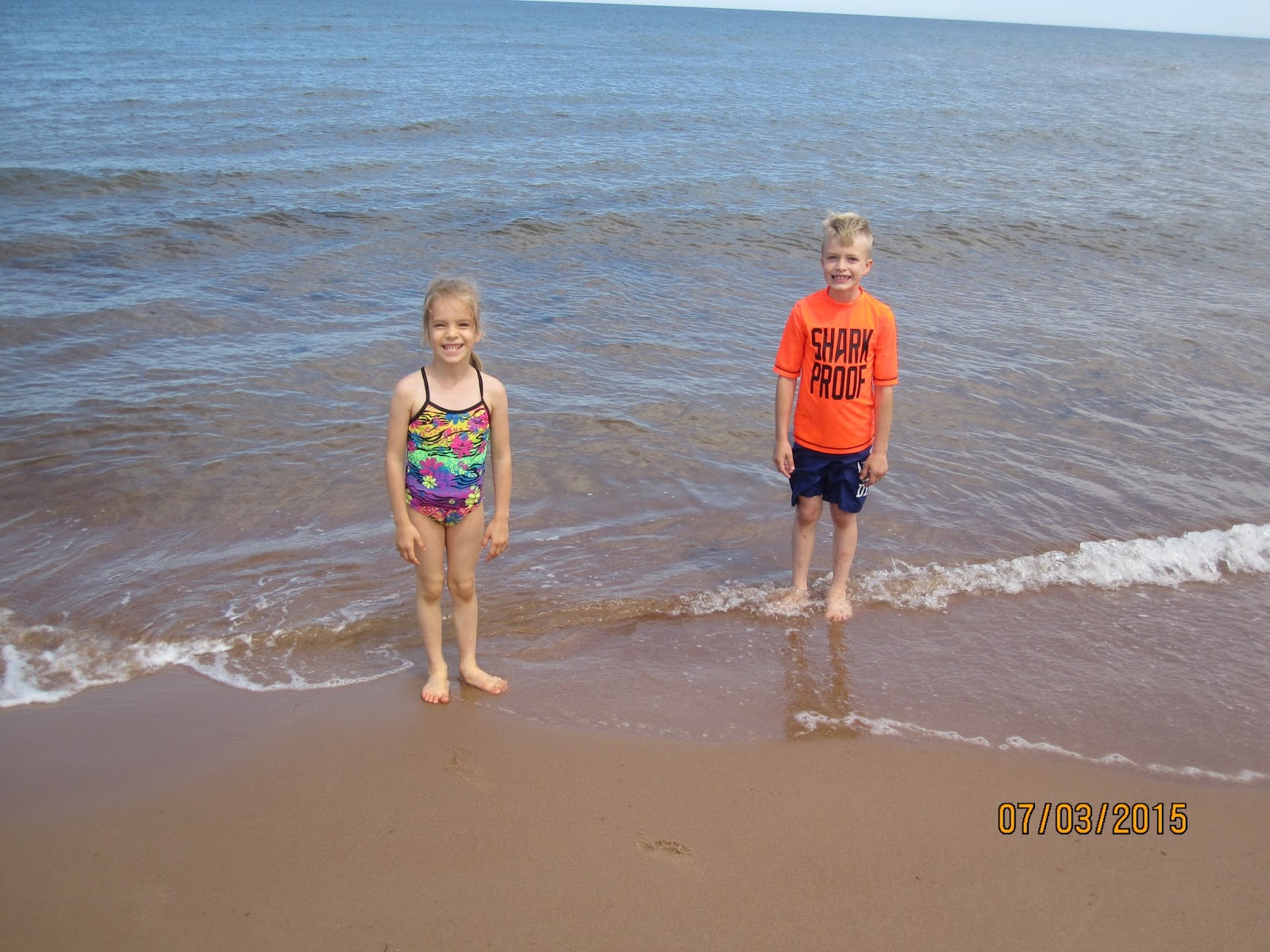 Even though the water was quite chilly, the kids braved it & waded for awhile